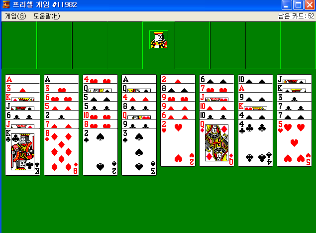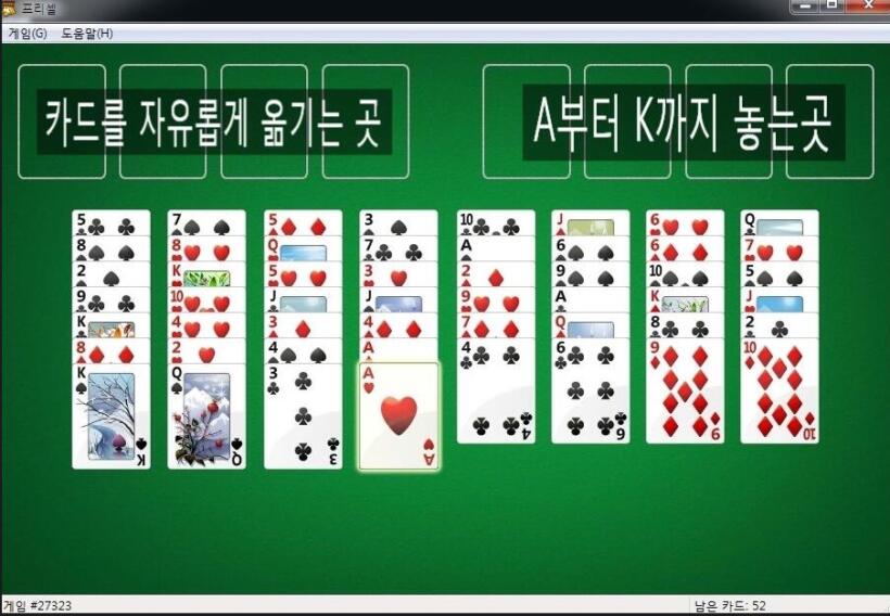 프리셀은 52장의 트럼프 카드를 문양별로 A부터 K까지 차곡차곡 쌓아 올리는 카드 게임인데요.