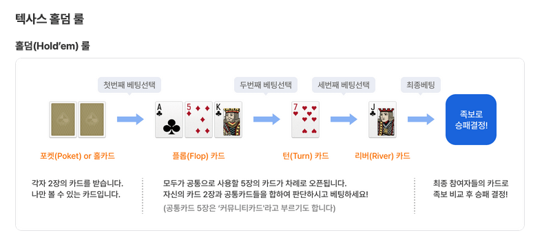 텍사스 홀덤에서는 프리플롭–플롭–턴–리버가 모두에게 동시에 공개됩니다. 정보는 완전히 동일하며, 차이는 해석과 베팅에서 발생합니다. 이것이 텍사스 홀덤 전략의 본질입니다.