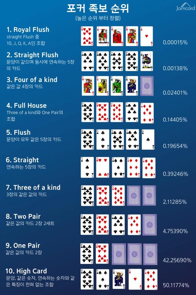 가장 강력한 족보부터 차례로 살펴보겠습니다.