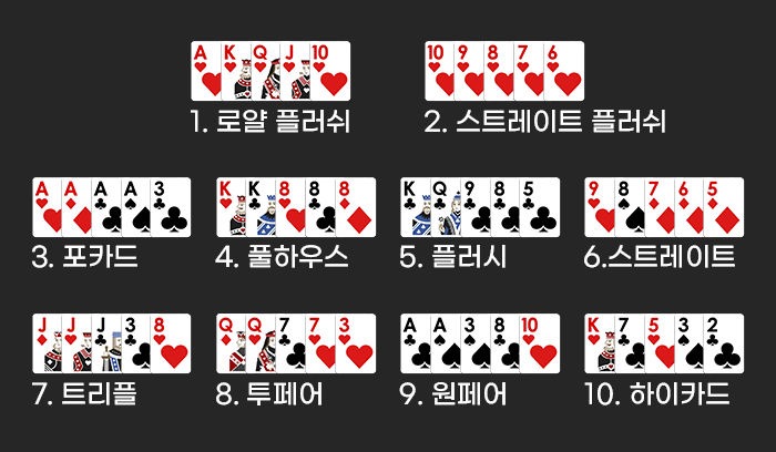 포커 규칙에서 가장 중요한 것은 카드 족보입니다.